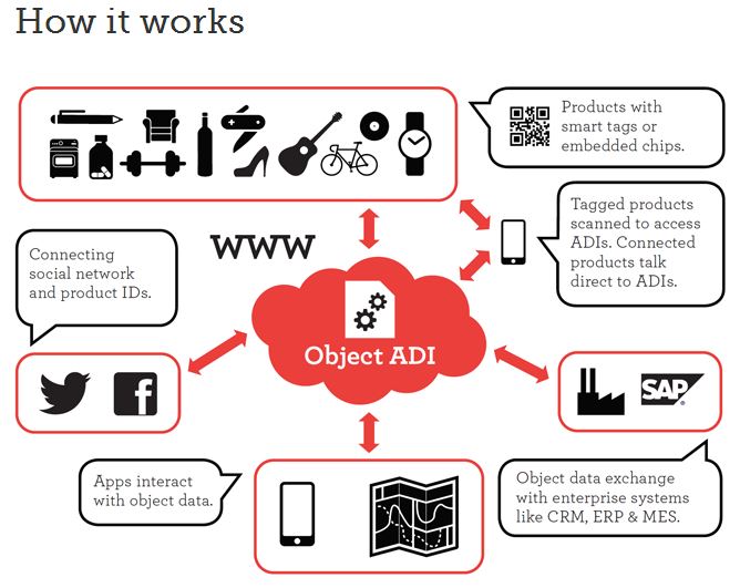 사물인터넷(IoT) 스타트업인 Evrythng은 세계적 네트워크 업체인 Cisco가 투자해 한때 화제가 되었다. Evrythng은 웹인터넷(Internet of Web)을 자처하며 사물마다 고유의 웹주소를 부여하는 기술인 ADI 서비스를 제공한다. 이를 통해 상품 구매자와 판매자는 상품을 매개로 하여 상호작용한다. 또한 판매자 입장에서도 제 3자를 거치지 않고 직접 고객에게 홍보를 하거나, 제품 관리를 할 수 있는 장점이 있다. 이는 궁극적으로 상품 브랜드와 고객 충성도를 높여준다. 그리고 Evrythng은 스마트하지 않은 제품에도 사용할 수 있다. 단순히 RFID나 QR Code 같은 Smart Tag를 부착하면 되기에, 모든 제품이 적용 대상이다.