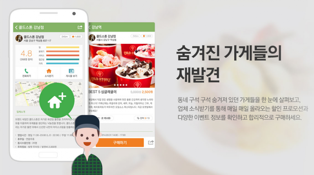 그러니까 소셜커머스의 장점을 우리 동네 가게에서 집중해서 누릴 수 있다는 뜻이다. 저렴하고, 가깝고 게다가 단골이 되기도 쉽다. 단골이 되면 좋은 점들이 꽤 있지 않은가. 열 개 사면 하나 더 준다던가, 네일아트를 할 때 신경써서 해준다던가.