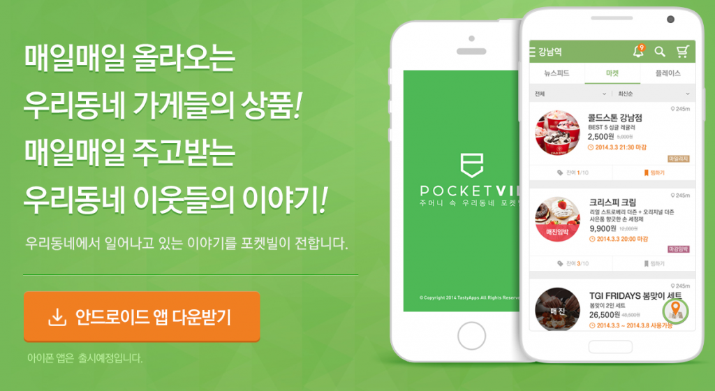 포켓빌은 동네 상인들이 자신의 상품을 포스팅하고 SNS를 통해 마케팅하게 해주는 플랫폼이다. 최근 동네상권에 대한 관심이 높아지며 포켓빌에 대한 관심도 덩달아 올랐다. 최근 스타트업 매체와의 인터뷰와 박원순 시장과의 스타트업 간담회 등 바쁜 일정을 소화하고 있는 테이스티앱스의 박인용 대표를 만나보았다.