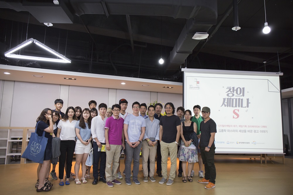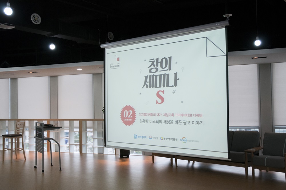 지난 7일, 판교 공공지원센터에서 창의세미나S 그 두 번째 세미나가 열렸다. 첫 세미나의 원동연 제작자에 이어 이번 행사에는 제일기획 인터렉티브제작그룹 김홍탁 마스터가 초청되었다. 경기도의 스타트업 관계자부터 가족단위의 청중까지 약 150명의 청중이 판교 공공지원센터를 방문했다.