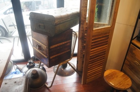 이곳에 배치된 가구, 집기류 등은 모두 이 회사에서 판매하는 상품들입니다. 이 테이블도 100만원후반대로 책정된 제품이죠. 철제 트렁크, 조명 같은 소품도 잘 나가는 제품입니다.