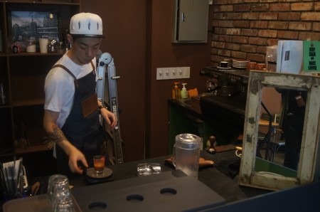 “저는 가구와는 무관하게 순수히 커피만 해 왔어요. 진짜로 바리스타입니다. 홍대에서 유명한 엔트러사이트 출신이죠.”