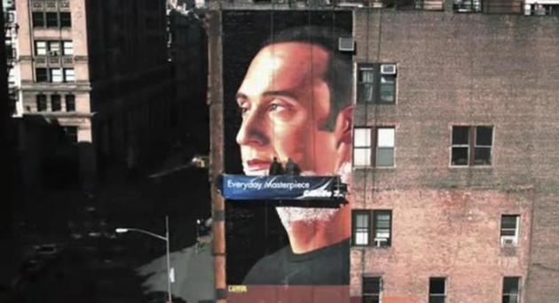 이와 비슷한 권법이 사용된 사례가 있었습니다. 국내에서는 박지성에 이어 기성용을 모델로 활용하고 있는 질레트, 미국에서는 데릭 지터가 모델입니다. 뉴욕 양키즈의 살아있는 전설이라고 할 수 있죠. 데릭 지터는 매일 매일 깔끔하게 면도하기로 유명하다고 하네요. 질레트의 대행사 BBDO뉴욕은 소호의 한 건물에 데릭지터의 얼굴을 건물 벽면에 그려 넣고 매일매일 면도하는 걸 재현해 큰 화제를 불러왔습니다.