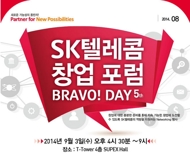 브라보데이는 기창업자들과 SK 텔레콤 사업부서가 정기적으로 교류하는 네트워킹 행사로 예비창업가에게는 창업 관련 정보를, 기창업자에게는 SK와의 협업의 기회를 제공한다.