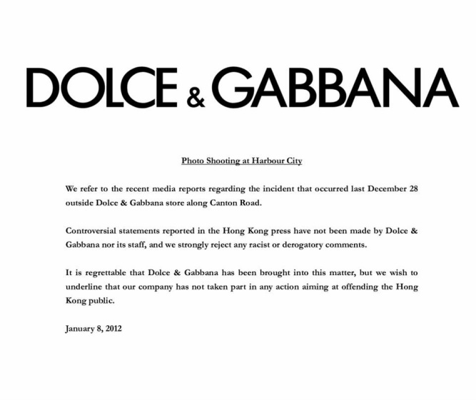 홍콩 매장에서 인종차별적인 논란에 휩쌓였던 패션브랜드 돌체 가바나의 사과도 한번 보자.
