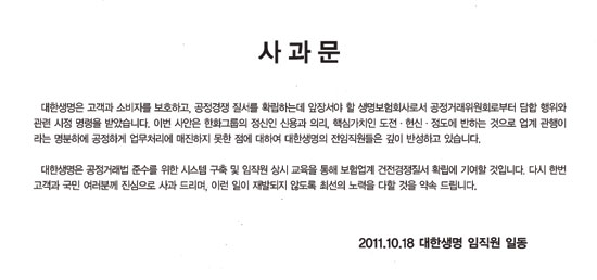 한국에서 흔하지 않은 기업의 원칙 강조 사례 : 대한생명
