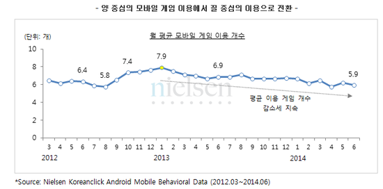 지난 해 초 평균 7.9개의 게임을 이용하던 이용자들이 최근에는 5.9개의 게임을 이용하는데 그치고 있습니다. 또 이중 주로 즐기는 게임 수는 2.7개에 불과하다고 합니다. 이웃나라 일본은 3.7개라고 하는데…