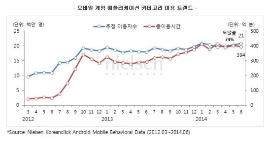 지난 7월 발표된 닐슨 코리아클릭의 ‘모바일 게임 플랫폼 경쟁 구도 분석’에 따르면 한국인 2100만명이 모바일게임을 즐기고 있으며, 하루 평균 62분을 모바일게임을 즐기고 있습니다.