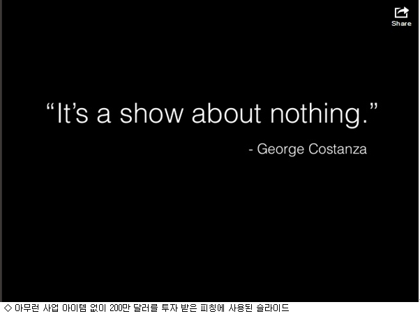 미국의 한 스타트업이 현재 아무런 사업 아이템도 없이 5장의 슬라이드를 피칭하고 200만 달러를 투자 받았다고 해서 화제이다. 이런 기사만 보면 정말 미국은 스타트업이 투자 받는 천국처럼 들린다. 스타트업이 사업 아이템도 없이 200만 달러를 투자를 받을 정도라면 웬만한 사업 아이템이 있는 한국 스타트업이 가면 엄청난 투자를 받을 수 있을 것 같다.