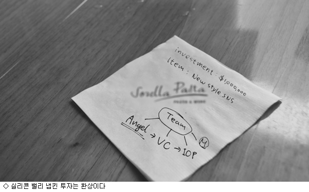 실리콘 밸리에서 엔젤투자를 진행 할 때 엔젤 투자자와 스타트업이 카페나 레스토랑에서 만나 사업계획서 없이 냅킨의 뒷면이나 명함 뒷면에 볼펜으로 적으면서 투자를 유치하는 게 유행이라는 기사를 본 기억이 있다. 물론 현상만 보면 그렇다. 하지만 그 단편적인 기사의 이면에는 이미 투자자와 스타트업 경영자 사이에 신뢰기반의 인간관계가 조성되어있다는 것이 빠져있다.