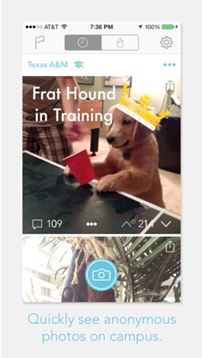 1) 사진 공유:지정된 대학 캠퍼스 대학생은 누구라도 자유롭게 ‘익명으로’ 사진을 올릴 수 있음. 업로드된 사진은 대학별 플랫폼에 실시간으로 공유됨. 사용자는 사진을 시간순 혹은 인기순으로 열람 가능.