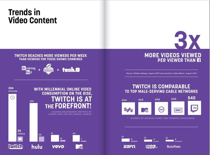 트위치는 게임 방송 플랫폼으로 사용자들이 직접 참여하여 방송을 만들고 시청하는 서비스입니다. 게임을 소재로 하기 때문에 주사용자층이 10~20대가 많다는 특징을 가지고 있기도 합니다. 때문에 주머니가 가벼운 이 세대들에게 전통적인 컨텐츠 판매나 수익을 만들어 내는 것은 쉽지 않아 보입니다. 다만 월간 사용자수가 5500만명에 이른다는 점은 아마존이 “광고” 에 대한 메리트를 느낄 수 있게 할만한 숫자입니다.