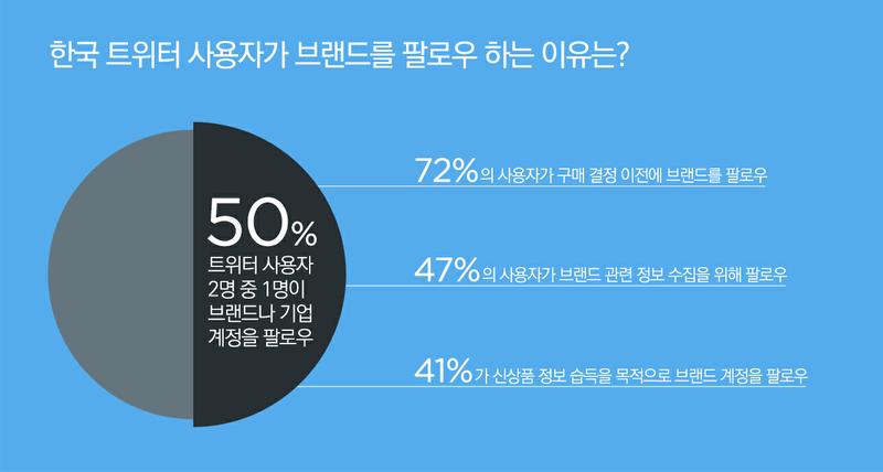 트위터 코리아는 사용자 분석을 통해 국내 트위터 사용자들이 일반 인터넷 사용자에 비해 소득 수준이 높고, 기업 계정에 대해 긍정적이라고 설명했다. 올해 3월과 5월에 각각 실시된 닐슨과 마크로밀(Macromil)의 트위터 사용자 조사 결과에 따르면 트위터 사용자 성별, 연령별 분포는 국내 전체 인터넷 사용자 인구와 비슷한 양상을 띄고 있으며, 사용자 중 연간 소득 4천 5백 만원 이상인 고소득자는 28%로 비사용자에 비해 약 7% 이상 많은 것으로 나타났다. 또한, 국내 트위터 사용자의 약 50%는 브랜드 계정을 팔로우하고 있으며, 브랜드 팔로우 목적으로는 브랜드와 관련한 정보를 수집하기 위함이 47%, 새로운 상품 및 서비스 정보를 얻기 위함이 41%로 조사되었다.