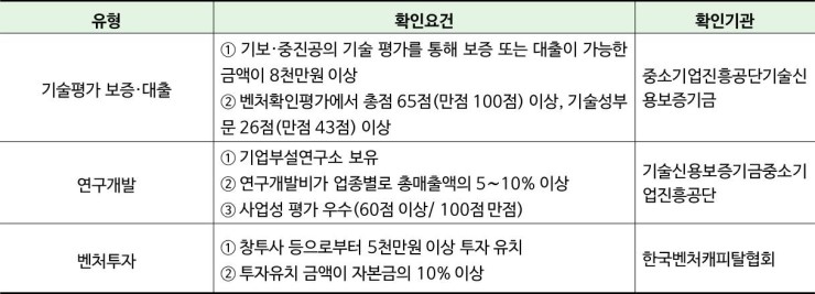 이번 벤처확인 제도 개선을 통해 우수한 기술력을 갖춘 기업들이 보다 수월하게 벤처기업으로 확인을 받을 수 있을 것으로 예상됩니다. 기술성 있는 많은 기업들이 벤처기업에 부여되는 세제, 입지, 자금 등 정부의 벤처지원 혜택을 통해 글로벌 경쟁력을 갖춘 기업으로 성장할 것으로 기대합니다.