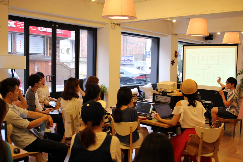 매주 토요일 오후와 저녁에 모여 자율학습과 강의를 진행한다. 모두 스스로 필요성을 느끼고 참여한 이들이기에 수업에 임하는 열정도 남다르다. 토요일 하루만 공부하는 것이나 주 중에도 수업을 듣는 이들끼리 모여 따로 자율 학습과 실습을 진행하고 있다. 코딩하는 디자이너는 디자이너들이 알아서 코딩을 공부하는 환경을 만드는 것이 목표다. 물고기를 잡아주려는 것이 아니라 물고기를 잡는 방법을 알려주려는 것이다.