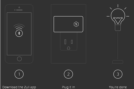 1) 플러그 삽입:방 콘센트에 Zuli 제품을 설치한 뒤 전자기기를 연결하면 별도의 추가제품이나 기기설정 필요 없이 블루투스 네트워크를 통해 연결된 전자기기를 조작할 수 있음. 기기 조작은 스마트폰 앱에서 이루어지며 간단한 On/Off에서부터 램프 밝기 조절까지 가능함. 뿐만 아니라 타이머 기능을 이용한 조작도 지원함.