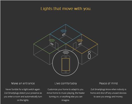 반면에 Zuli는 마치 멀티탭을 꽂듯 콘센트에 꽂으면 설치가 완료된다. 그리고 사용자는 스마트폰 앱과 연결된 전자기기를 곧바로 확인할 수 있다. 뿐만 아니라 기본적으로 제공하는 스마트폰 앱 구동시 이런 자동 위치 확인 기술에 최적화되어 있다. 사용자가 있는 방을 인식하여 그 방과 연결되어 있는 전자기기를 자동으로 앱상에서 보여준다. 다만, 아직까지 100%의 정확도를 보장하지 못한다는 점이 단점이라면 단점이다.