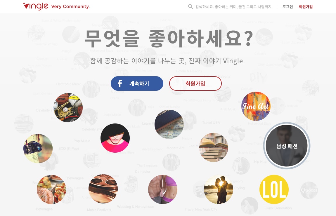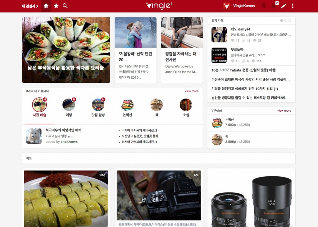 이외에도 아직 로그인하지 않은 사용자들도 Vingle에 있는 다양한 콘텐츠와 활발한 활동이 이뤄지는 커뮤니티의 상황을 한 눈에 쉽게 살펴볼 수 있도록 첫 방문자를 위한 홈페이지 개편도 이뤄졌다.