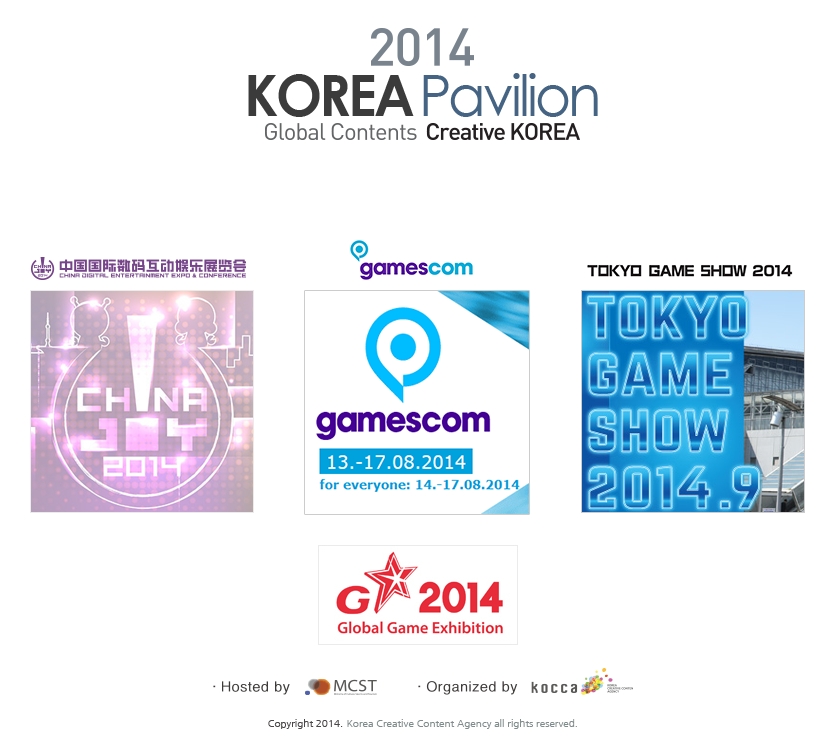 문화체육관광부와 한국콘텐츠진흥원이 오는 18일부터 21일까지 개최되는 일본 최대 규모의 게임 전시회인 도쿄게임쇼(Tokyo Game Show 2014) 기간 중 우리 게임기업들의 일본시장 진출을 지원하기 위해 한국공동관을 운영한다.