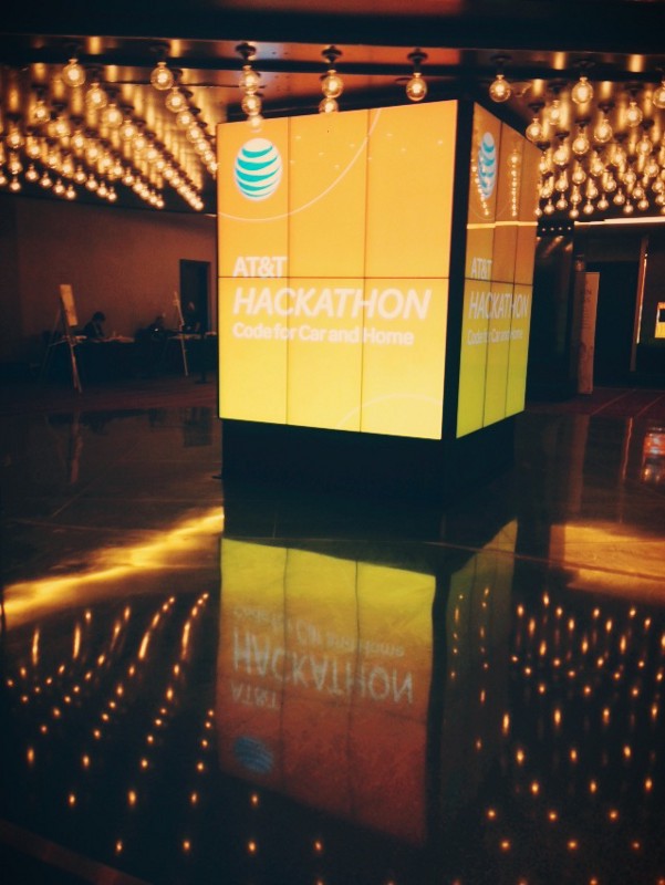라스베가스의 뜨겁고 건조한 공기와 대비되는 시원한 코스모폴리탄 호텔 안에서 열리는 이 AT&T 해커톤의 규모는 내가 생각했던 것보다 훨씬 컸다. 가운데 메인을 양 옆으로 차가 두 대 세워져 있고, 그 주위를 이번 해커톤에 API와 서비스를 지원하는 여러 기업들의 부스가 둘러 쌓여져 있었다. 입구 주변으로는 많은 음식들이 있었고, 아침을 먹으려는 사람들이 분주히 오갔다.