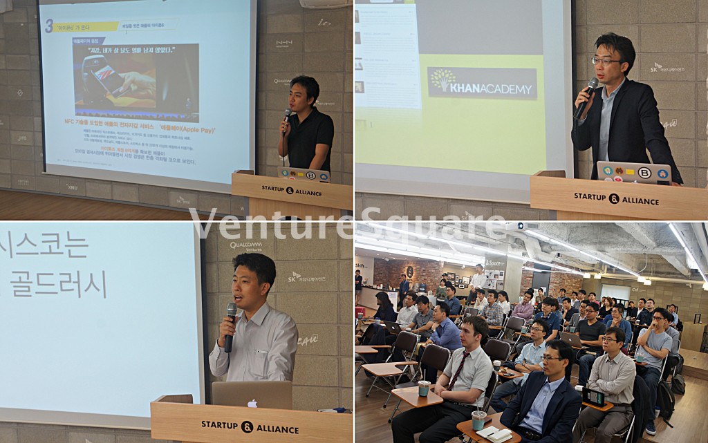 어제 행사에서는 3명이 발표를 해주셨습니다. 모바일 전문 미디어렙 모비데이즈의 유범령 대표가 ‘국내외 모바일 시장 동향 파악’[발표자료], 미국 Bay Area K-Group의 윤종영 회장이 ‘실리콘밸리의 한국인 업데이트’[발표자료]를 통해 실리콘밸리 동향도 전해 주셨습니다. 마지막으로 스타트업얼라이언스 임정욱 센터장이 얼마 전에 샌프란시스코에서 개최되었던 비글로벌(beGlobal) 2014에 다녀온 소감[발표자료]을 발표했습니다.