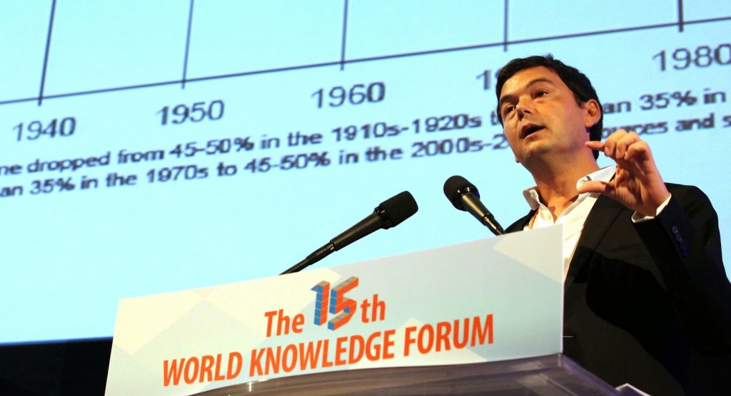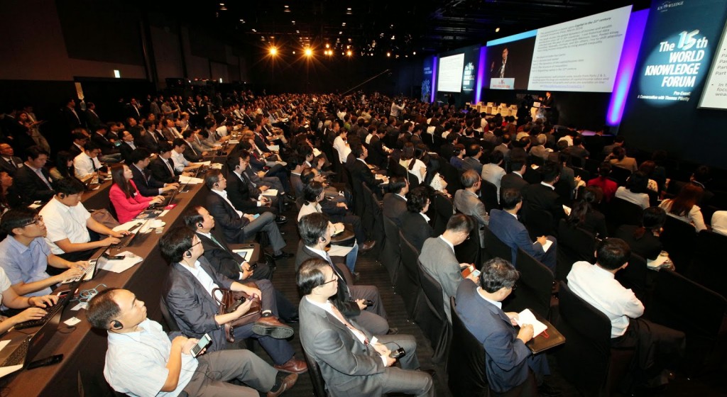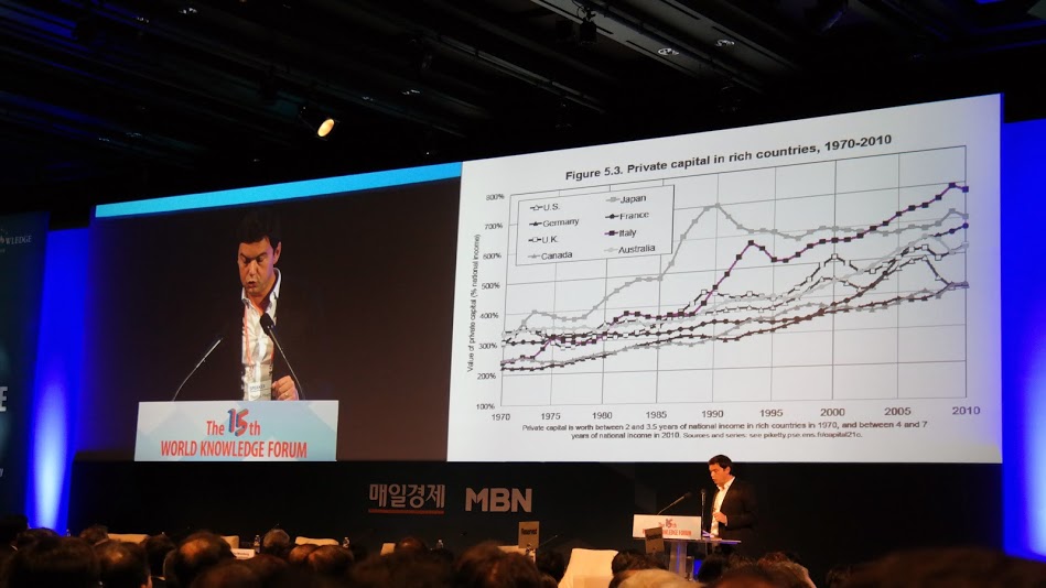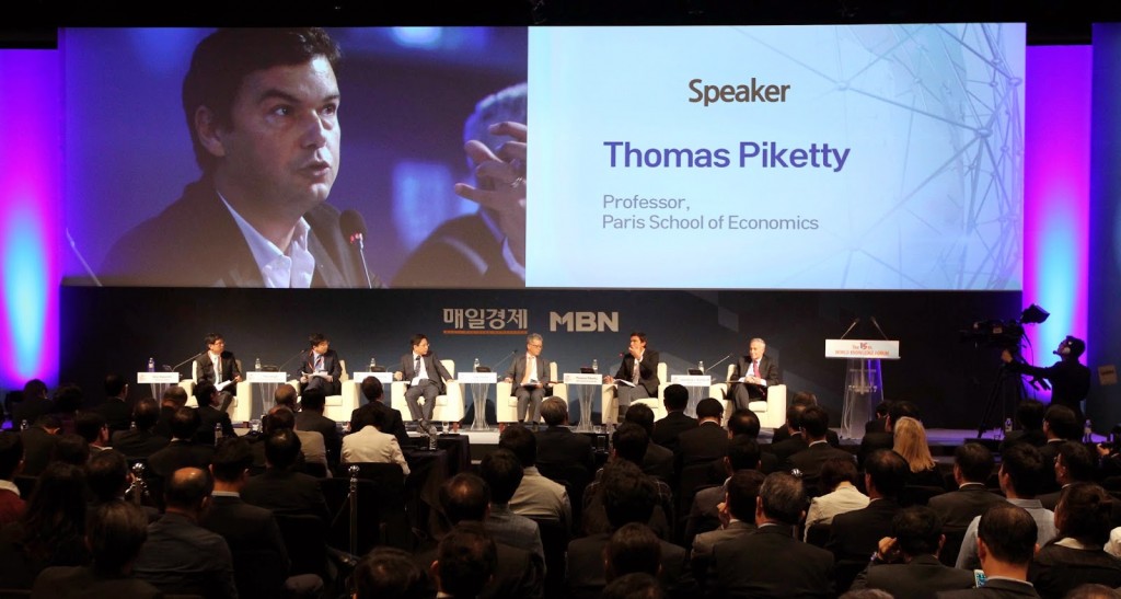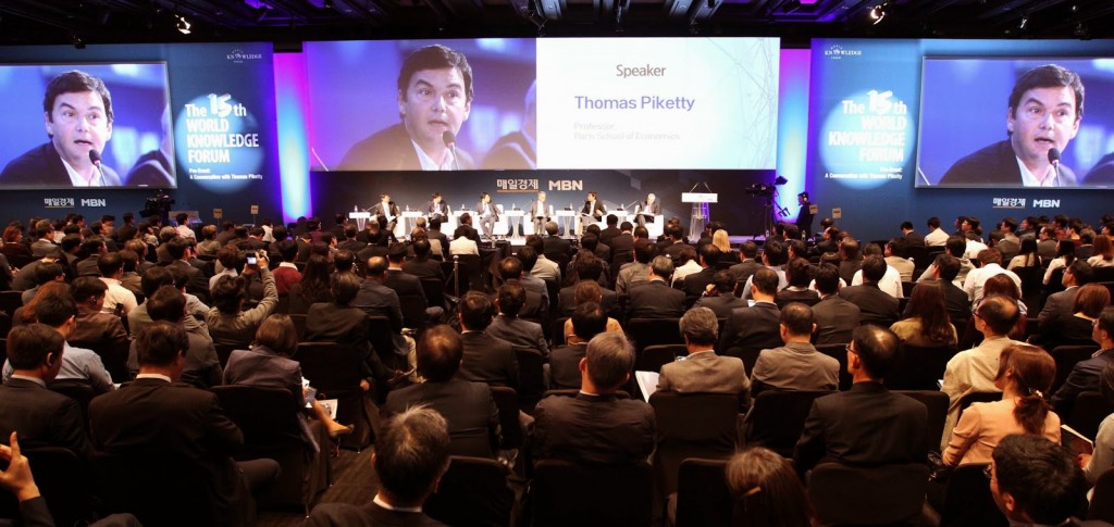 토마 피케티 교수가 오늘(2014년 9월 19일) 제 15회 세계지식포럼 사전 행사에 와서 강연을 했다.