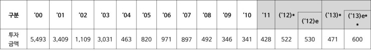 →(‘13, 확정 전망치) 600억원, ’11년 대비 37.6% ↑