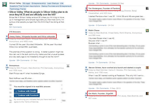 “아닌 듯. 일례로 미국판 지식iN인 쿼라(Quora)에서 실리콘밸리에 있는 사람들은 35살이 넘으면 무슨 일을 하냐는 질문에 올라왔지. 이때..”