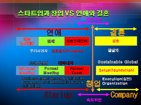 바로 그거야 비유로 말 한다면 Startup은 연애고 창업은 결혼이야.