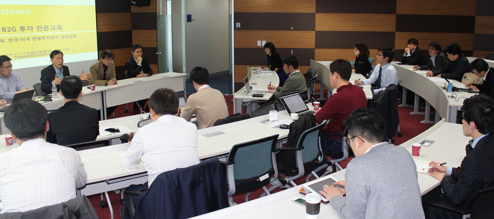 미래창조과학부 산하 미래글로벌창업지원센터는 오는 10월 13일부터 서울 상암동 누림꿈스퀘어 21층에서  'B2G Investment' 투자 전문교육을 실시한다. 지난 4월에 있었던 투자교육 세미나에서 교육생들이 강사의 말에 귀를 기울이고 있다.