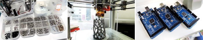 원하는 걸 할 수 있다는 것에 요즘 하루하루가 즐겁고 행복하다. 올해 1월1일부터 대량생산을 목적으로 3D 프린터 설계를 시작했다. 그때 배낭 하나 짊어매고 시흥, 시화, 구로, 청계천에 있는 기계공구단지를 다니며 부품을 찾아다녔다. 지금은 강선을 어디서 사고 도금은 어디서 하는지 다 알고 있고, 거래처도 수 십 곳이 생겼다.