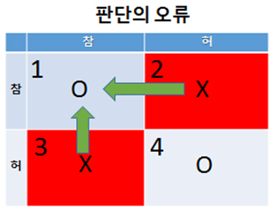 그런데 참을 거짓으로 거짓을 참으로 판단 한다면 심각한 문제를 야기 한다. 자동차 생산 라인에서 불량품을 양품으로 판단해 합격을 시켰다면 회사를 믿고 그 자동차를 구입한 사람은 인명사고를 일으킬 수 있는 심각한 문제를 발생 시킨다.