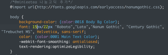 css영역에서 font 또는 font-family를 찾아 해당 글꼴을 추가해준다.