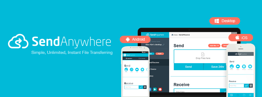 센드애니웨어는 회원 가입이나 로그인과 같은 번거로운 과정 없이 어떤 형태의 파일이든 원본 그대로 빠르게 전송 할 수 있으며, 파일을 받는 사람도 일회용 6자리 키만 입력하면 쉽게 전송 받을 수 있는 서비스이다.