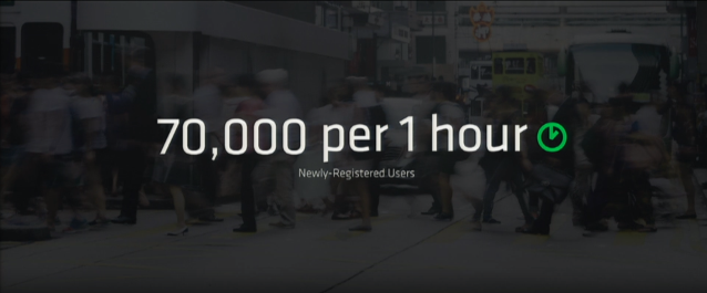 신규 가입자가 한시간이 7만명을 상회한다는 수치는 다시 계산하면 하루에 168만명이 가입한다는 이야기입니다. 총 가입자 숫자는 이미 수 억단위의 사용자수 경쟁 시장이 되었기 때문에 첫 화두로 꺼낸 데이터가 무척 신선하고 임팩트가 큰 것 같습니다.