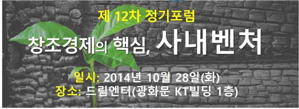 매달 창조경제의 핵심 과제에 관한 포럼을 개최하고 있는 (사)창조경제연구회(이사장 이민화)가 이번 달에는 ‘창조경제의 주역, 사내벤처’라는 주제를 발표하고 정부, 기업, 학계 등 각계 전문가들의 의견 청취와 토론을 진행할 예정이다.