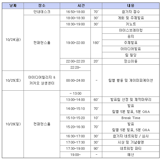 일정은 아래와 같다. 그 외 자세한 정보는 여기에서 확인가능하다.