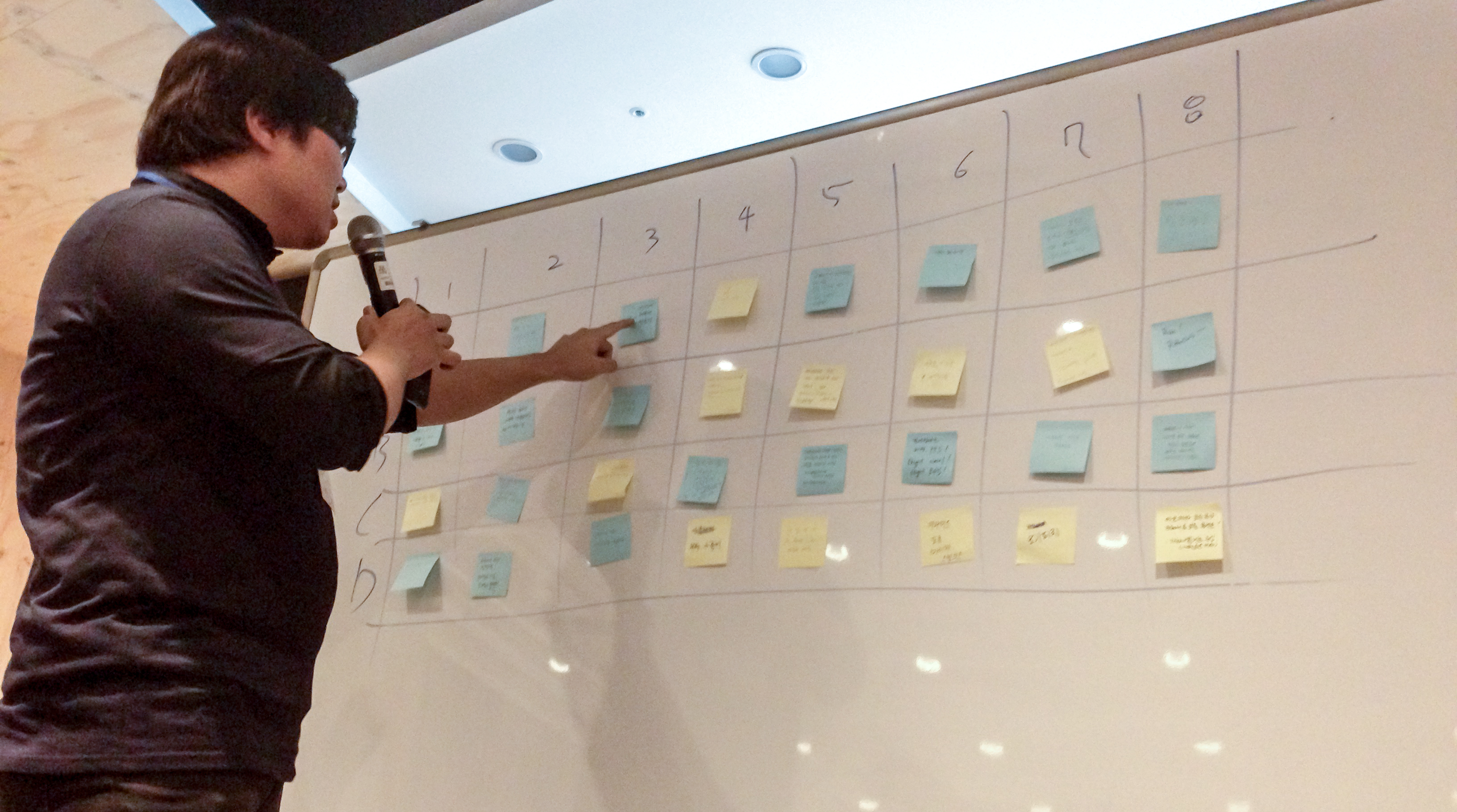 ‘아프리카 보드게임’이라는 아이디어를 설명하고 있는 참가자