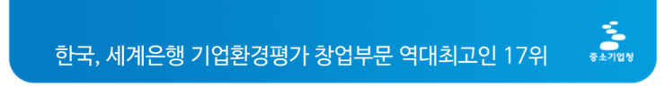 우리나가가 세계은행 기업환경평가 중 창업부문에서 큰 폭으로 상승한 것은 선순환 벤처·창업생태계 구축과 창업관련 덩어리 규제 완화 등 그간 정부의 노력이 반영된 결과로 보여집니다.