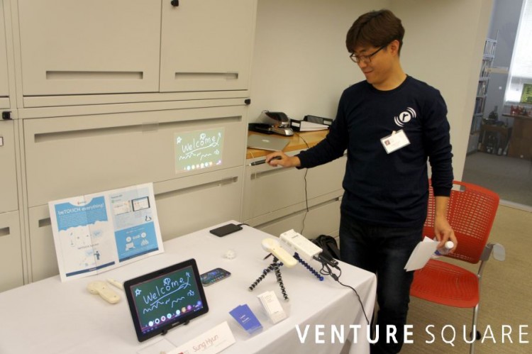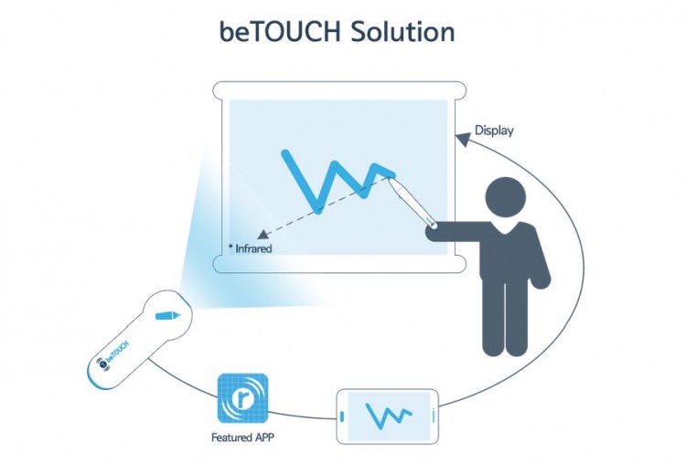 “애니랙티브는 모든 사람들을 어떠한 디바이스와도 연결해준다는 의미에요. 적외선 터치 펜과 카메라 기기를 통해 터치가 되지 않는 스크린도 터치가 가능하도록 해서 어떤 디바이스 화면에서도 판서가 가능하도록 하죠. 그리고 이렇게 쓰인 판서는 디지털화되었기 때문에 따로 받아 적거나 옮겨 적을 필요 없이 손쉽게 공유도 가능해요. 예를 들자면 터치스크린이 아닌 일반 TV 화면에도 판서를 하고, 그 내용을 공유할 수 있어요. 적외선 터치 펜이 보낸 광신호를 카메라가 좌표로 인식해서, 판서를 디지털화하고, 다양한 화면에 맞게 영상처리를 하여 보여주는 것이 저희 기술의 핵심인 거죠.”