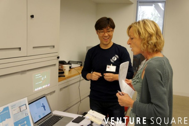 실리콘밸리 관계자들에게 제품을 시연하며 네트워킹 시간을 갖고있는 임성현 대표