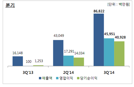 지난해 3분기 매출 161억원, 영업이익 겨우 ‘1억’에 불과하던 컴투스가… 1년 만에 매출 868억원 영업이익 459억원의 초우량 기업으로 변신!