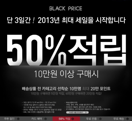 그리고 결제액 50%까지 적립해주는 블랙 프라이스를 연달아 시행!