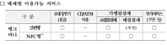 어째 설명이 더 복잡해지는 것 같지만.. 이 뱅크머니는 NFC를 쓰는 것과 안 쓰는 것 두 가지로 다시 나눠집니다.