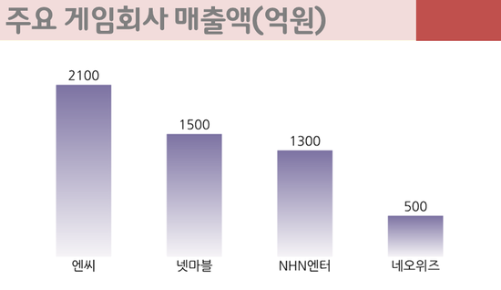 네오위즈게임즈와 한게임이 무너지면서 명실상부 2인자가 됐다고 볼 수 있습니다. 네오위즈게임즈는 매출 500억원, 한게임은 1300억원 수준까지 떨어졌으니까요.