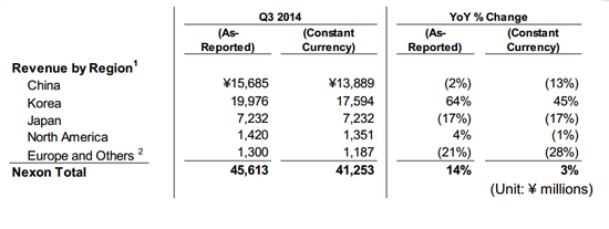 또 재밌는 부분은 넥슨이 일본에 상장된 회사답게 엔저효과를 톡톡히 보고 있다는 점입니다. 만약 지난해와 환율이 동일했다면 넥슨의 매출은 증가폭은 14%가 아닌 3%에 불과했다고 하네요.
