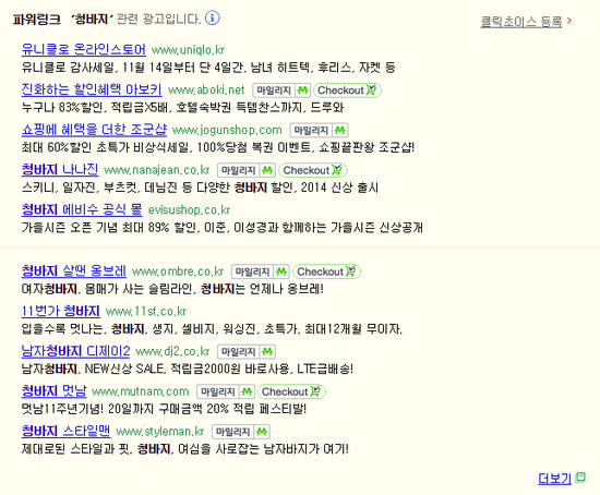 이 또한 검색광고의 모바일버전입니다. 최근 모바일을 통한 검색유입이 PC를 압도하면서 시장이 커지고 있는데요. 아쉬운 것은 PC 검색광고와 다를 게 거의 없다는 것이죠. 그저 PC화면은 크니까 15개 노출하고 모바일 화면 작으니까 3개만 노출하고 있다는 점 정도? 특정 마케팅 수단이라기보다는 검색광고의 보완적 장치라고 보면 이해가 쉬울 듯 싶습니다.