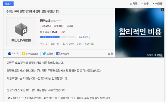 제품과 관련 있는 카테고리 내 커뮤니티에서 홍보포스팅을 올리는 것입니다. 만약 제품이 영어교육솔루션이라면 직장인 혹은 학생 스터디모임이 좋은 대상이 될 수 있겠죠. 장점으로는 블로그와 마찬가지로 돈이 들지 않고 어느 정도 클릭수를 보장받을 수 있다는 장점이 있습니다.