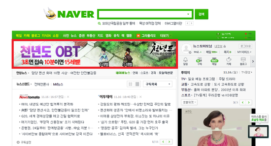 국내에서 회당 가장 비싼 온라인광고죠. 네이버, 다음 알짜지역에 노출된 디스플레이 광고입니다. 그 위치를 통상 타임보드라 하는데요. 시간대에 따라 가격기 제각각이지만 싸게는 150만원, 비싸게는 3000만원에 호가합니다. 보통 포털이 직접 영업을 하지만 미디어랩사가 중개를 맡기도 하죠.