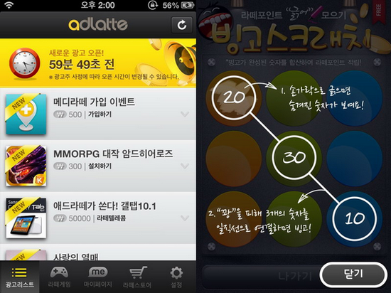 보상형 광고라고 해서 한때 엄청 화제가 됐던 모바일광고 형태죠. 광고를 보거나 앱을 다운로드 받으면 이용자에게 적립금을 준다고 해서 리워드광고인데요.